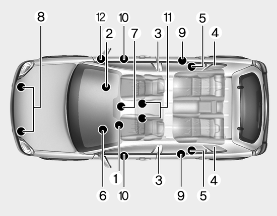 11. Датчики ремня безопасности водителя и переднего пассажира (если применимо)
