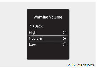 Если двигатель перезапускается, время предупреждения Громкость предупреждения будет поддерживать последняя настройка.