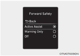 При включенном двигателе выберите «Помощь водителю» > «Безопасность движения» в меню Меню настроек, чтобы установить, использовать ли каждая функция.