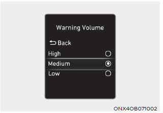 Если двигатель перезапускается, время предупреждения Громкость предупреждения будет поддерживать последняя настройка.