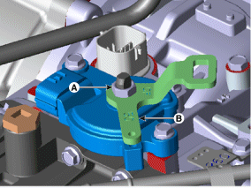 Совместите отверстие (А) в рычаге ручного управления с отверстием