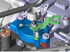 Затяните гайку (А) и болты (В) до указанного момента затяжки.