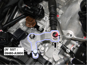 Отсоедините отрицательный (-) кабель аккумуляторной батареи.