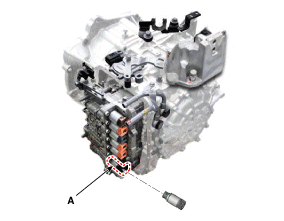 Отсоедините датчик температуры масла (А) и разъем электромагнитного клапана.