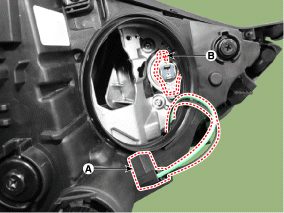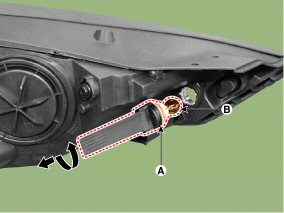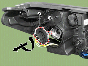 Снимите лампу ближнего света (В) после извлечения патрона.
