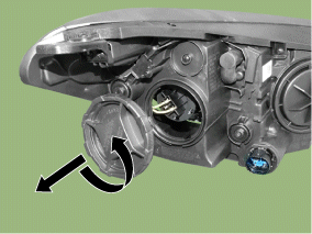 Снимите колпачки ламп с фар в сборе после