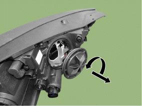 Снимите лампу дальнего света (А) после освобождения фиксатора.