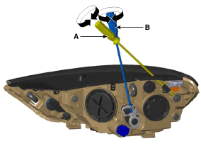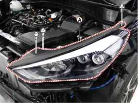 Снимите фару (А), предварительно ослабив крепежные болты.