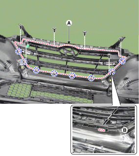 и снимите решетку радиатора (А).