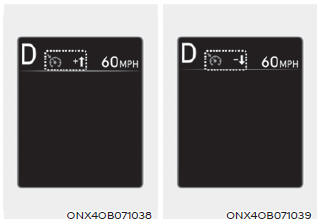 Если скоростной режим на дороге изменится во время работы в ручном режиме Limit Assist или Smart Cruise Control, стрелка в направлении вверх или вниз есть отображается для информирования водителя о том, что установлен надо менять скорость. В это время, водитель может изменить заданную скорость в соответствии с ограничением скорости с помощью + или – включить рулевое колесо.