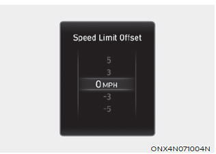 При включенном двигателе, когда «Помощь водителю> Ограничение скорости> Смещение ограничения скорости» выбрано, смещение ограничения скорости может быть изменено. Предупреждение об ограничении скорости и система ограничения скорости будет работать применение настройки смещения ограничения скорости до обнаруженного ограничения скорости.