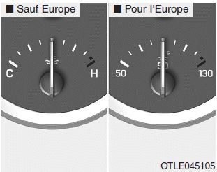 Этот датчик показывает температуру охлаждающей жидкости двигателя, когда зажигание или кнопка запуска/остановки двигателя находятся в положении ON.