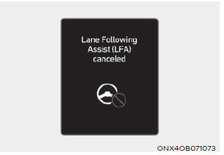 Если у водителя до сих пор нет своего руки на руле после предупреждение о невмешательстве, Предупреждающее сообщение Assist (LFA) отменено появляется, а система слежения за полосой автоматически отменяется.