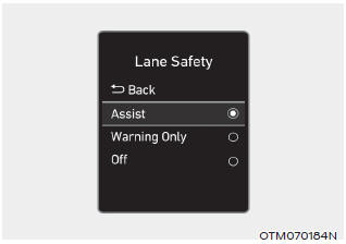 При включенном двигателе выберите «Помощь водителю > Безопасность при движении по полосе». Меню настроек, чтобы установить, использовать ли каждая функция.
