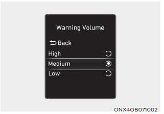 При включенном двигателе выберите «Помощь водителю > Громкость предупреждения» из Меню настроек для изменения предупреждения Громкость на «Высокий», «Средний» или «Низкий» для Помощь в удержании полосы движения.