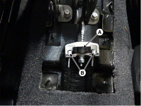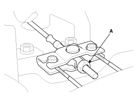 Снимите трос стояночного тормоза (В) после снятия уравнителя.