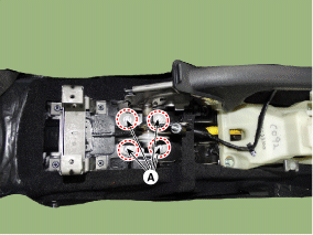 Отсоедините разъем выключателя стояночного тормоза (А).
