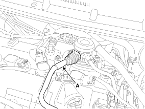 Отсоедините быстроразъемный соединитель (А) от шланга подачи топлива.