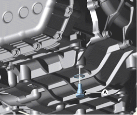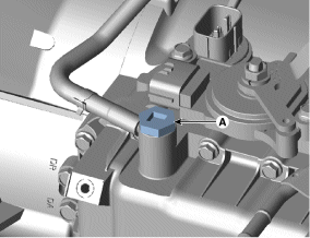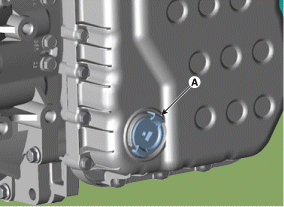 Снимите контрольную пробку уровня жидкости ATF (A) с крышки.
