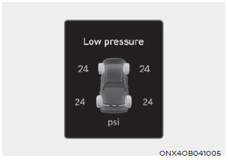 Это предупреждающее сообщение отображается, если давление в шинах низкое. Соответствующий шина на транспортном средстве будет освещена.