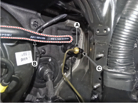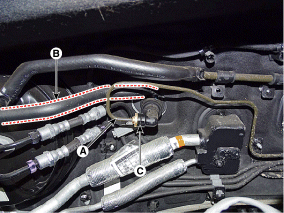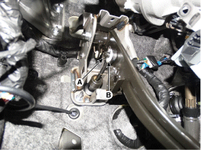 Отсоедините трубку сцепления (А) и шланг бачка (В).