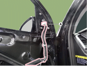 Отсоедините разъем наружного зеркала (А).