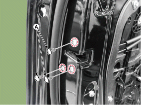 Ослабьте крепежные винты (А) фиксатора передней двери.