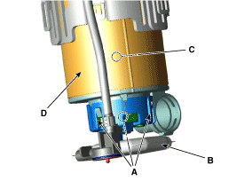 Снимите двигатель топливного насоса (C) с топливного фильтра.