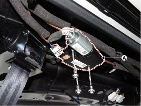 Снимите двигатель шторы (A) после отсоединения разъема.