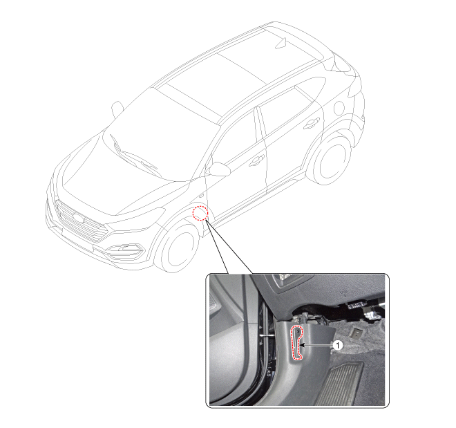 Снимите крючок ручки разблокировки замка багажника (А).