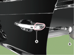 Снимите наружную ручку передней двери (А), сдвинув ее