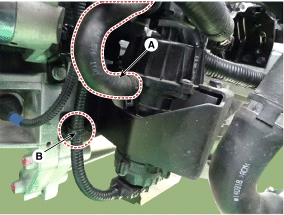 Отсоедините вакуумный шланг (А), затем снимите зажим,