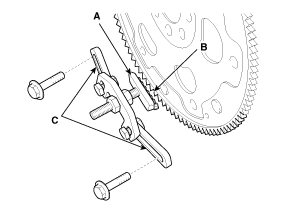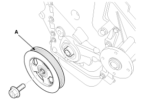 Снимите демпферный шкив коленчатого вала (А).