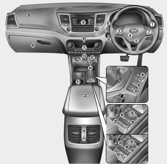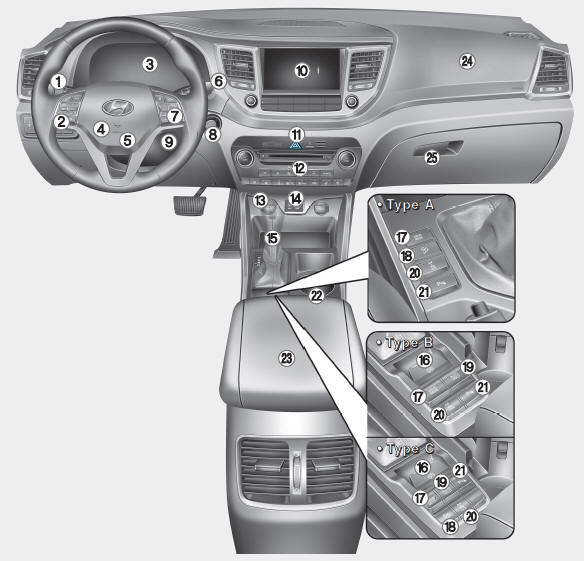 20. Кнопка выключения системы помощи при парковке сзади или системная кнопка