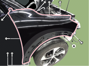 Снимите боковой монтажный кронштейн переднего бампера (A) после