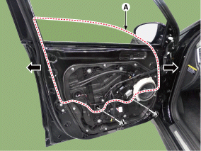 Отделите отверстие монтажной заглушки (А) от модуля передней двери.
