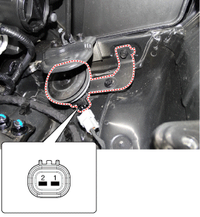 Отсоедините отрицательную (-) клемму аккумуляторной батареи.