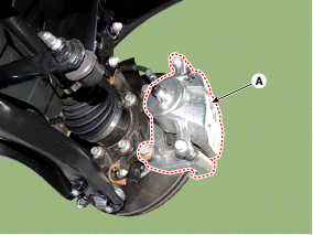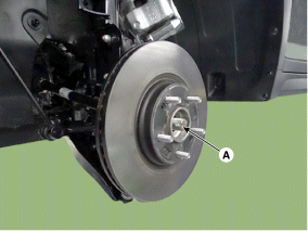 Отсоедините приводной вал (А) от передней ступицы в сборе.