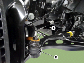 Снимите нижний рычаг с соединения с помощью SST (09568-4R100).
