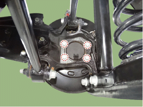 Ослабьте болт крепления переднего тормозного диска, затем снимите