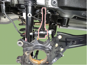 Снимите датчик скорости вращения колеса (А) с кронштейна заднего моста.