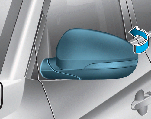 Чтобы сложить наружное зеркало, возьмите его за корпус и сложите по направлению к задней части автомобиля.