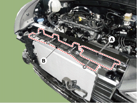 Снимите верхнюю воздушную защиту радиатора (В).