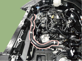 Снимите верхний шланг радиатора (А).
