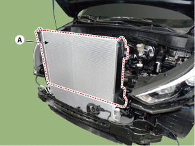поднимите радиатор в сборе (А).