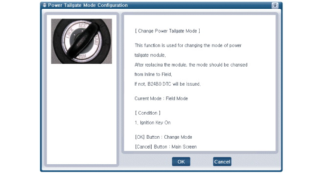 Выполните процедуру изменения режима двери багажного отделения в соответствии с