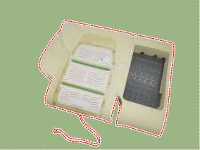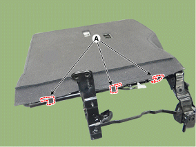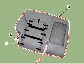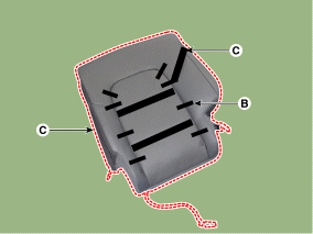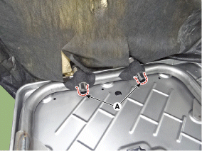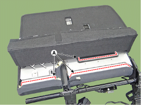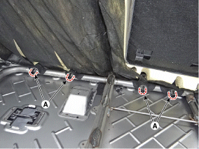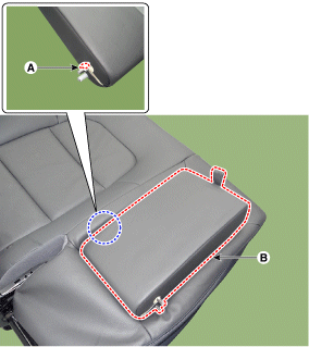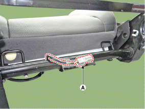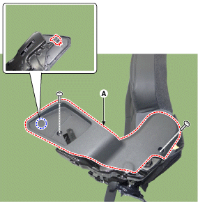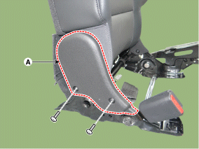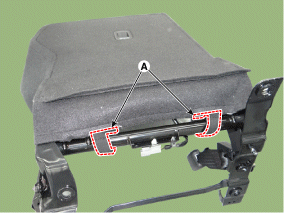 Извлеките протектор (А) из рамы спинки переднего сиденья.