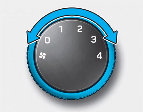 Ручка управления скоростью вентилятора обеспечивает регулировку скорости воздуха из системы вентиляции. Чтобы изменить скорость вентилятора, поверните ручку вправо, чтобы поднять его, и влево, чтобы опустить.