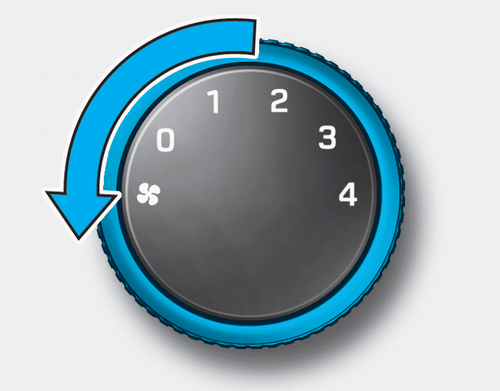 Чтобы выключить вентиляторы, поверните диск регулировки скорости вращения вентилятора. вентилятор в положение «0».