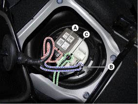 Снимите топливный бак с автомобиля, предварительно сняв хомут топливного бака (А).